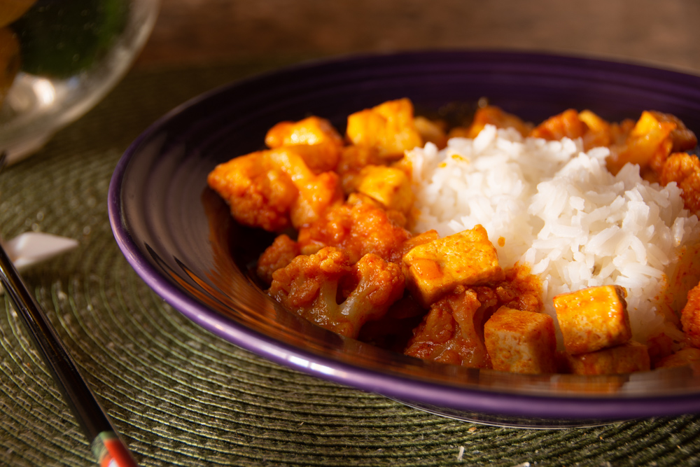 When we moved from our rental to our condo, Adrien bought the Myers + Chang At Home cookbook for us as a house-warming. I’ve played with trying out a few of the recipes and they are incredible. With more at-home cooking going on these days – and more plant-based eating – I decided to give this recipe, Red Curry Cauliflower With Tofu, a try.