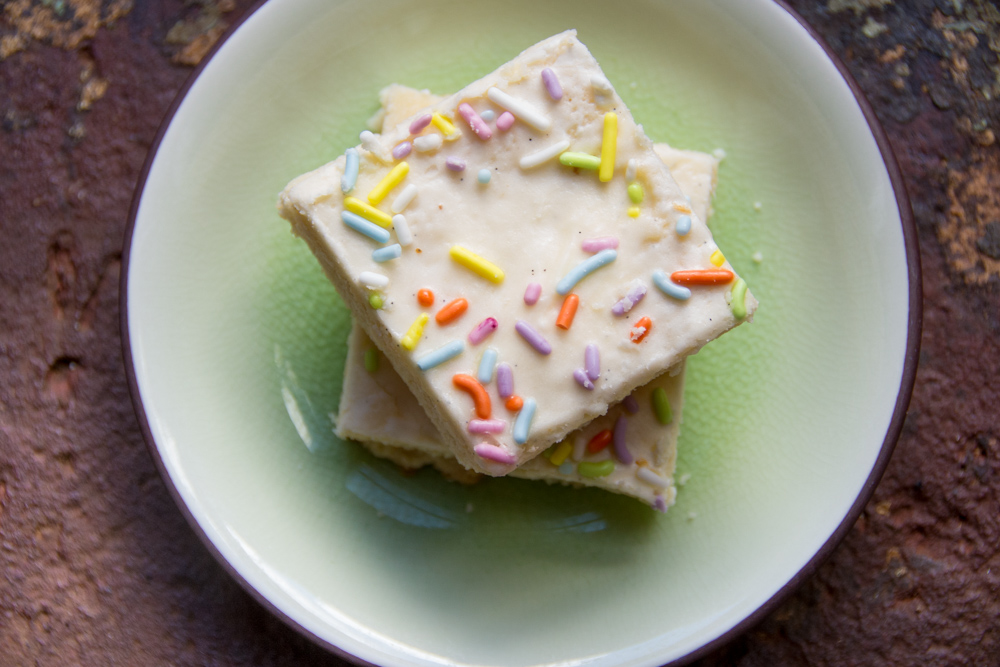 - Using a spatula, spread the frosting on top, then decorate with sprinkles, if using. Cut into 20 bars and serve.