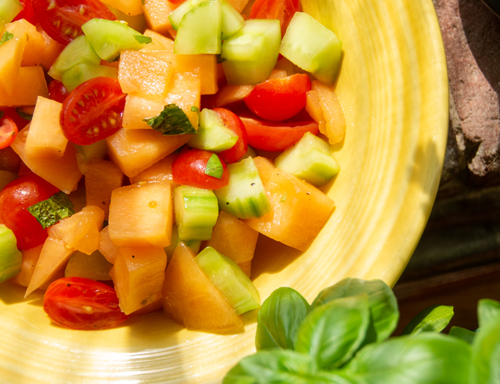 A heatwave, ripening melons and tomatoes and… the desire for a cooling salad? This was a refreshing recipe from columnist and food author David Tanis published on the New York Times recently. As advertised, it is really simple to put together and fast – just allow some time for marinating.
