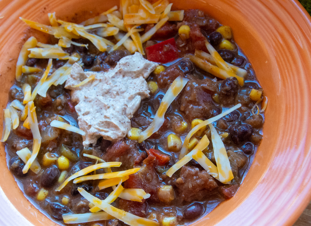 Easy Black Bean Vegetarian Chili with Spiced Yogurt
