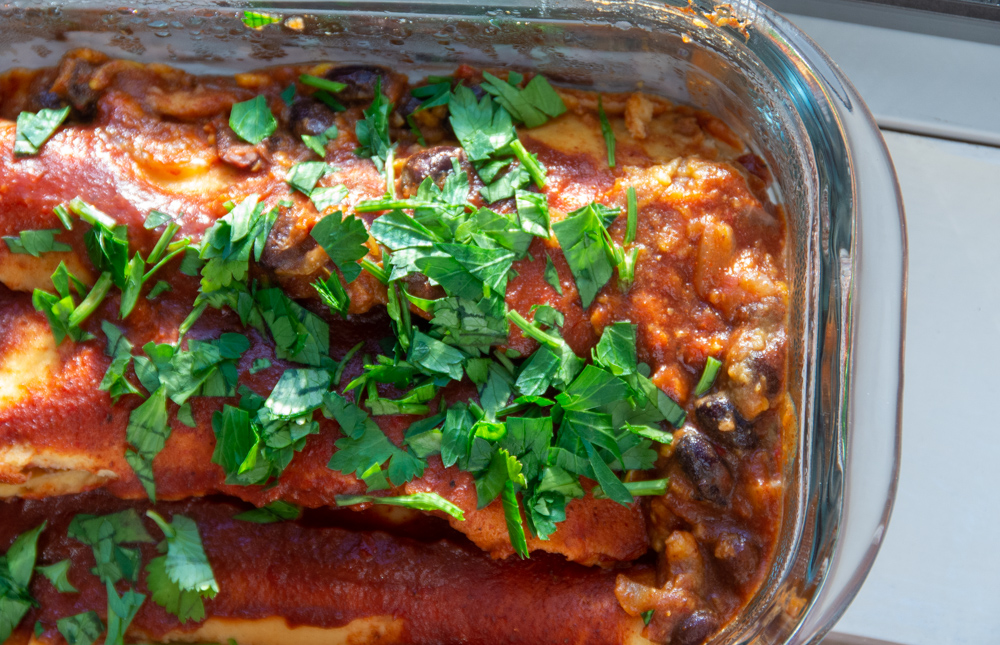 Sweet Potato, Squash, and Black Bean Enchiladas
