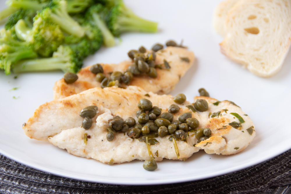- Divide chicken among plates , top with capers and drizzle with sauce.