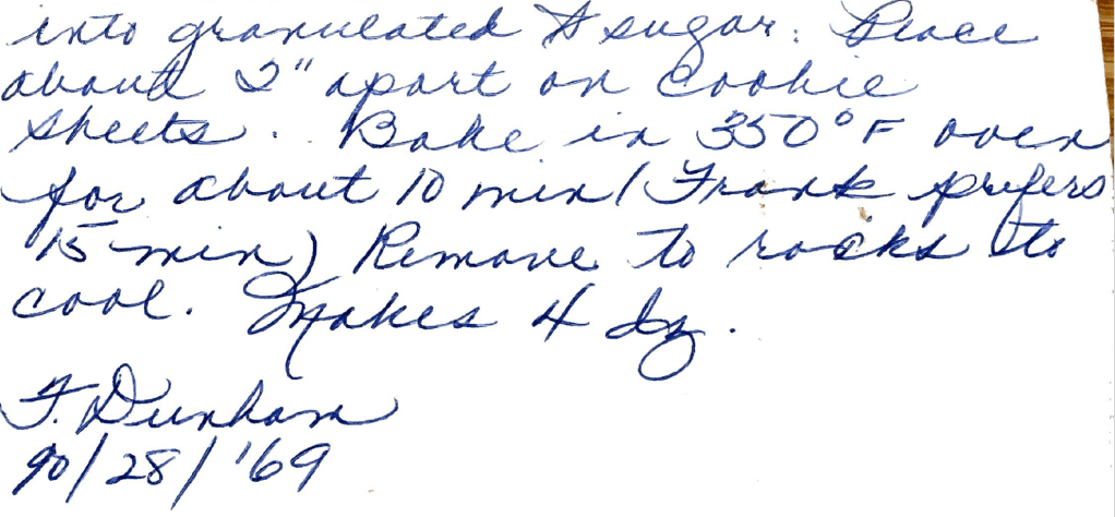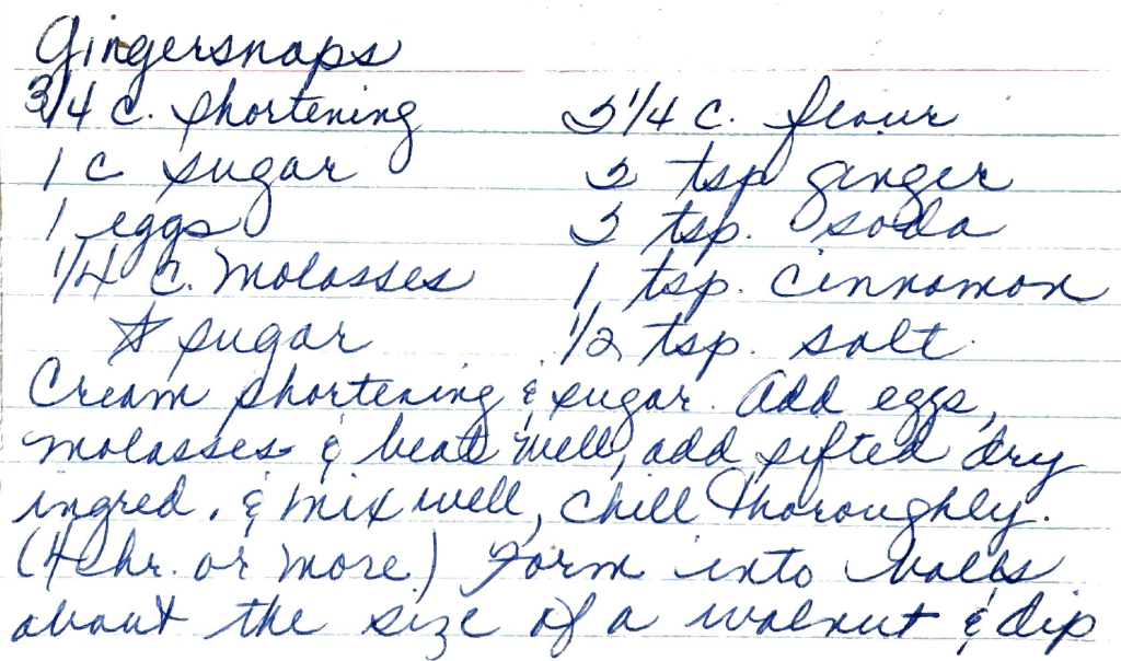 This trip down memory lane triggered my own recollection. I had Frank Dunham’s recipe for Gingersnaps! So now that it’s been rediscovered, what could I do, but bake up a batch and fill my kitchen not only with delightful spiciness, but happy memories of childhood.