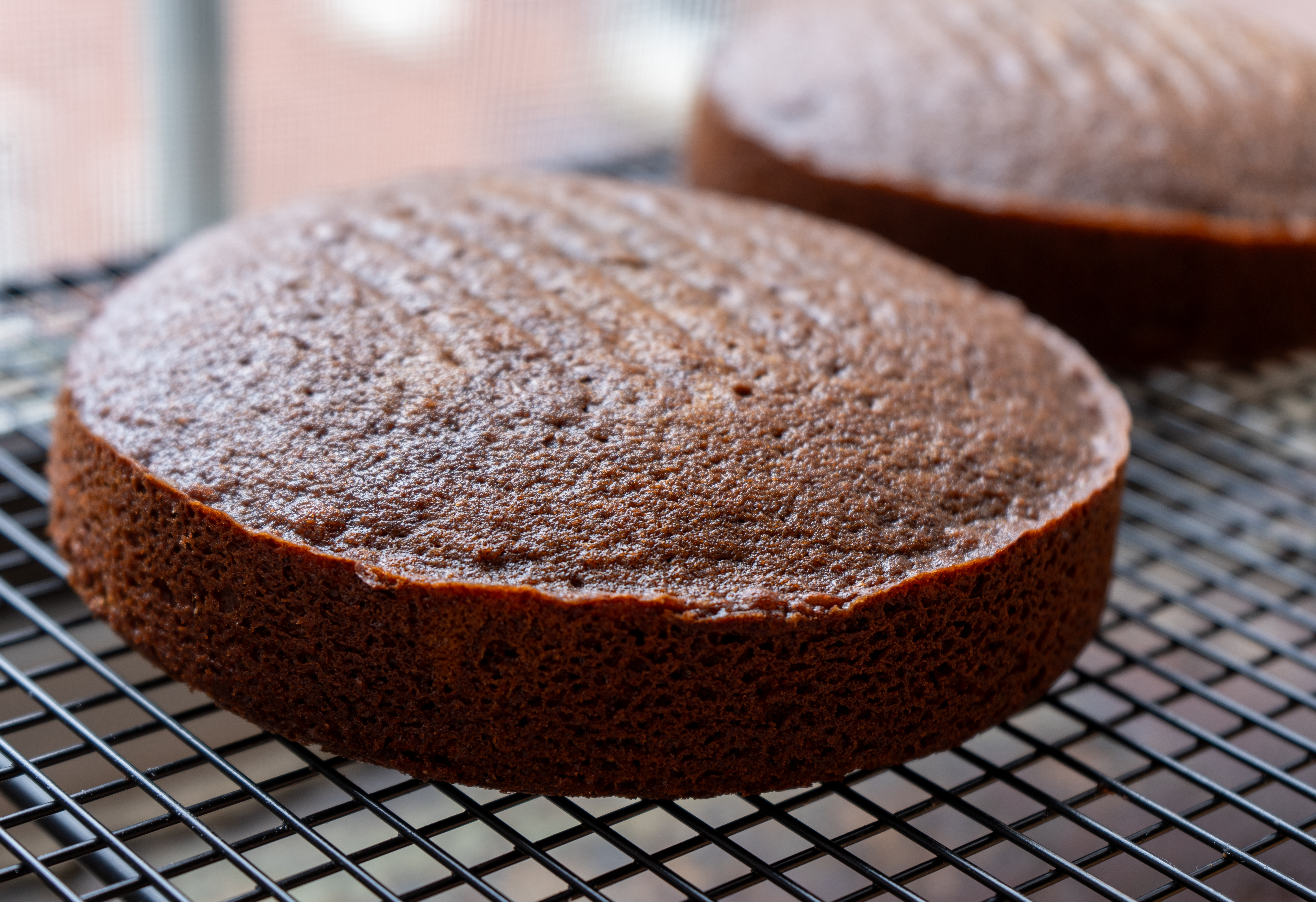 - Bake in 2 lined 9-inch round pans at 350 F for 25-30 minutes.