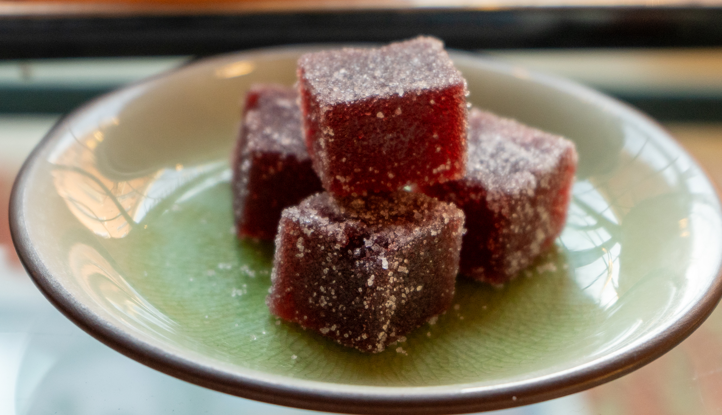 We had encountered these candies on our travels to France, but this version has a definite New World flavor. Mulled wine makes the Pâtes subtly spicy and thanks to the addition of unsweetened apple sauce, very apple-y.