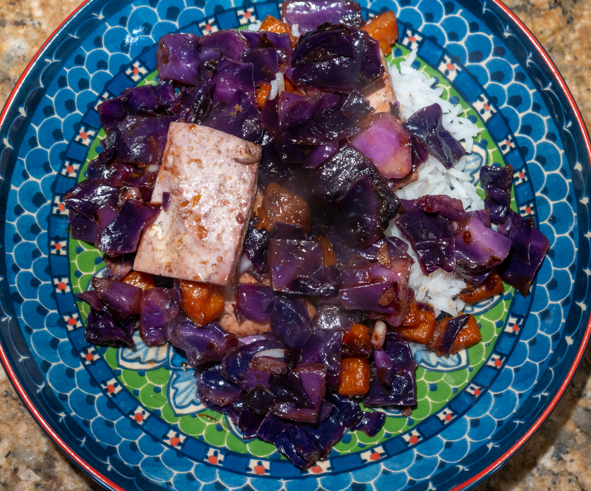 Stir-Fried Tofu, Red Cabbage and Winter Squash