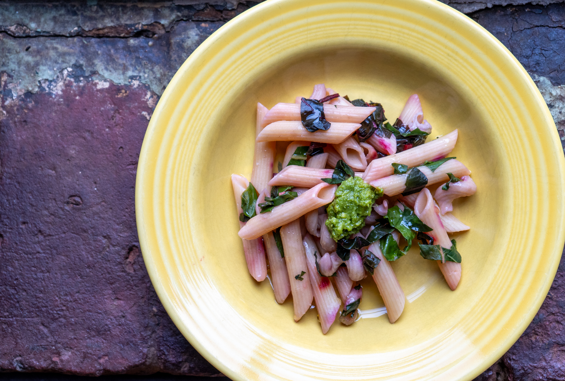 We’ve started our Winter CSA share with Clark Farm a few weeks ago, and even with cold weather, we are pretty darn impressed with our weekly haul. Week one brought us a beautiful bunch of chard along with garlic and some of Clark Farm’s Arugula Pesto. So, we had a pasta night which included all three.