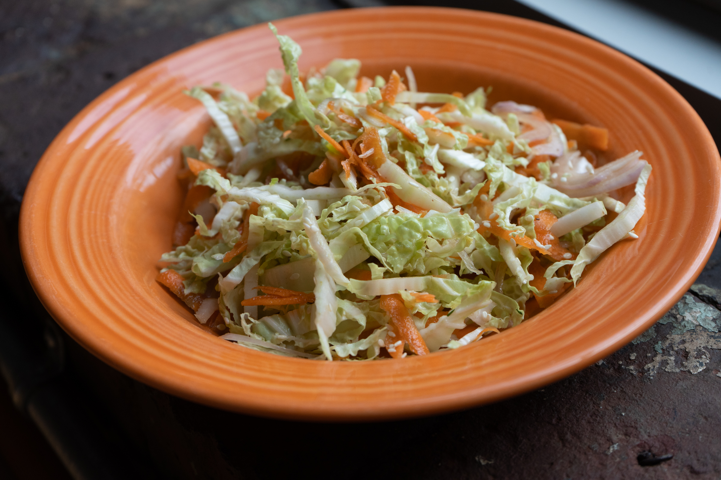 Our Clark Farm Winter CSA Share this week included some crisp and beautiful Napa cabbage. We also received some carrots and with that, a slaw was born.